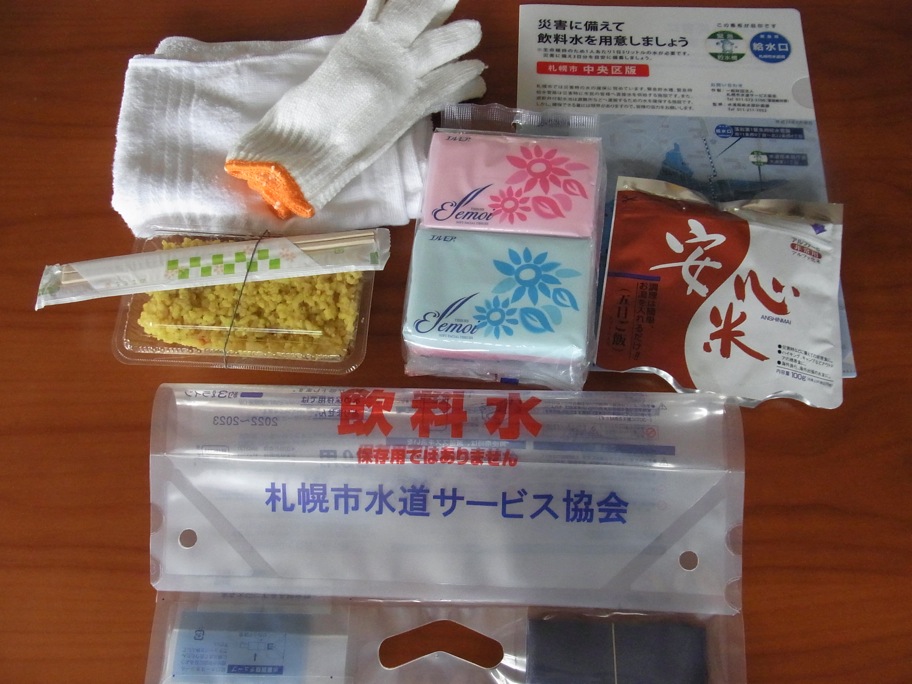 最後に非常時の給水用ビニールパックや非常食をもらって帰りました。